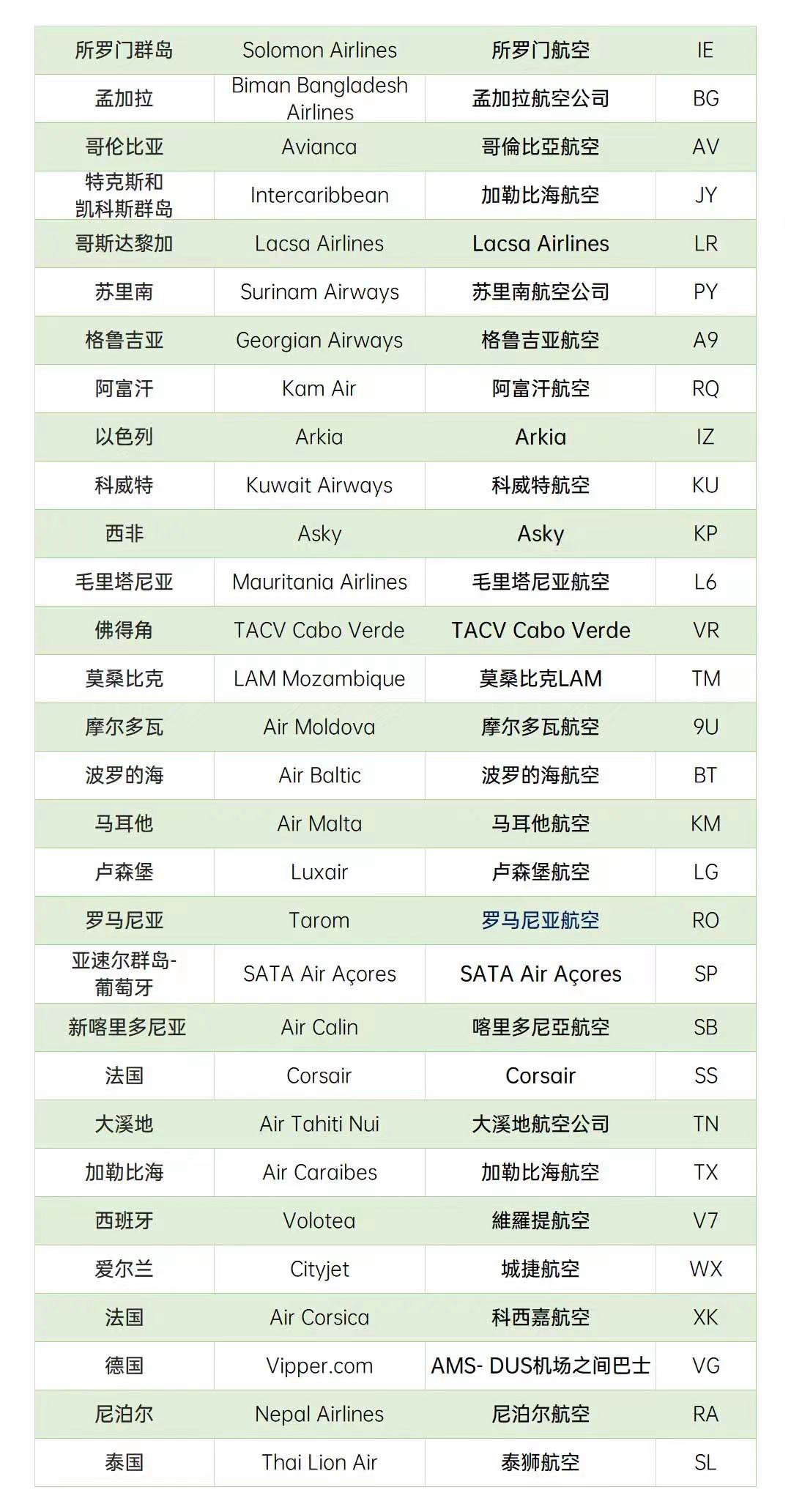 泓然商旅在中國航信、德付通和APG的支持下,拓展新增了100余家非洲、中東、歐洲、南亞等地航空公司所運營的本土航線資源,極大地滿足了中國客戶在上述地區進行深度旅行的需求,可安全高效的覆蓋更全面的航線,讓您的出行更加便捷。至此,泓然商旅獲準授權的航空公司已接近三百家,涵蓋了全球95%以上的航線。以下是新增區域航線參考: